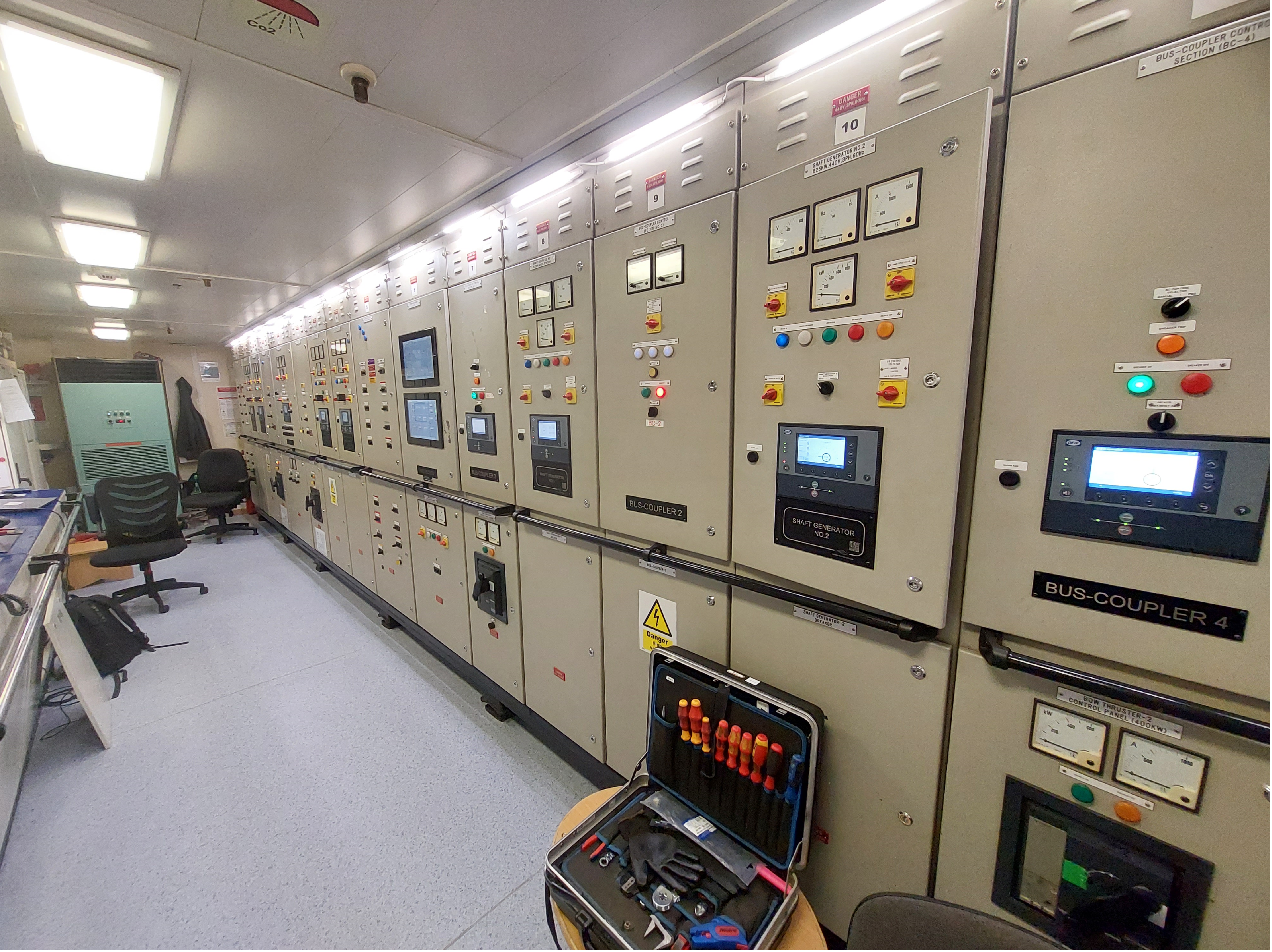 Wyremontowany system zarządzania elektrownią okrętową składa się z 2 prądnic wałowych, 4 agregatów podstawowych i agregatu awaryjnego. Może on pracować automatycznie, półautomatycznie oraz manualnie.