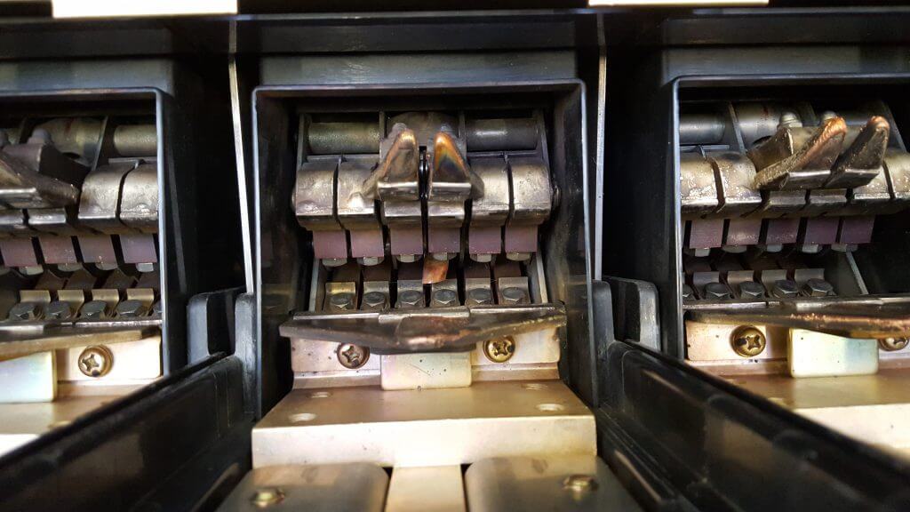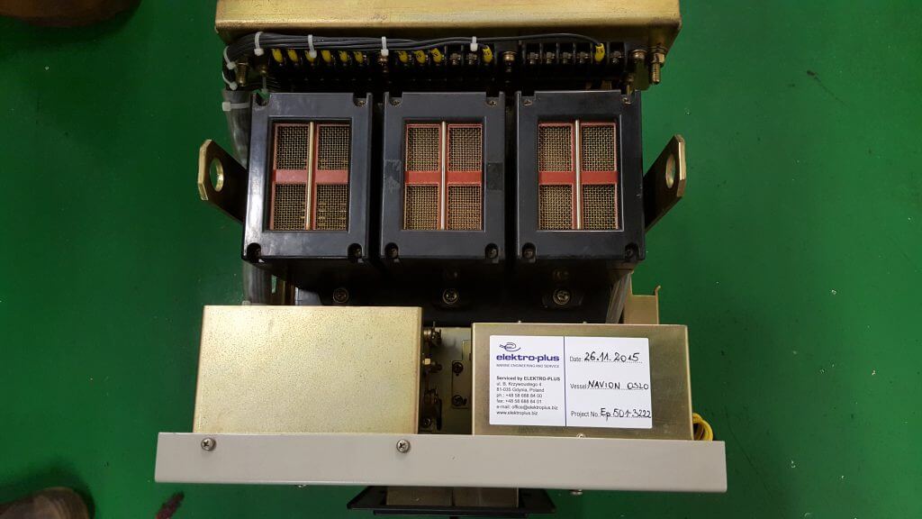 Wyłączniki te zdemontowano i dostarczono do naszego warsztatu celem wykonania przeglądu i testów na naszym stanowisku do wyłączników. Po prezentacji dla armatora i wystawieniu nowych certyfikatów zainstalowano je ponownie na statku.