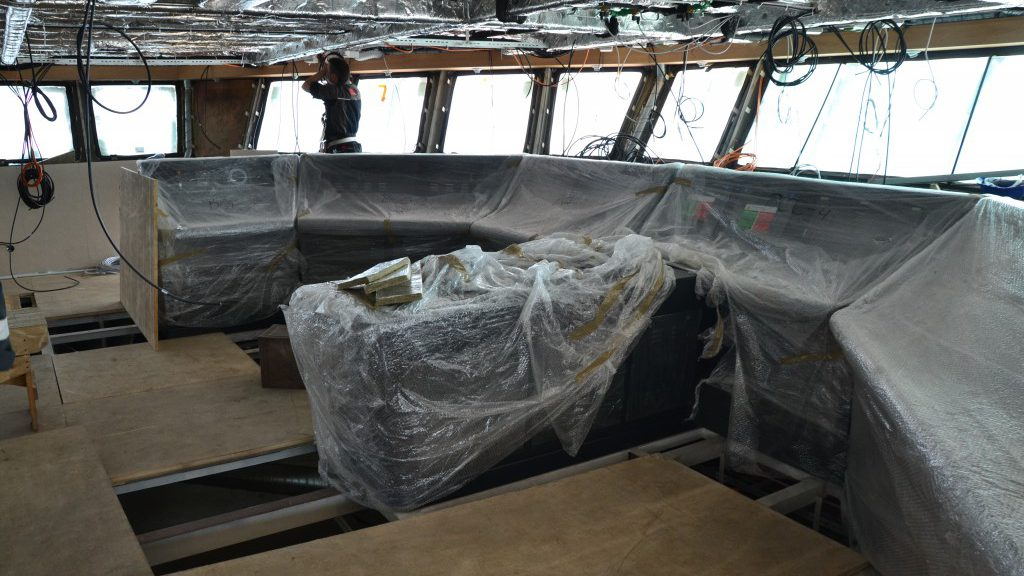 Our company was responsible for electric systems onboard. Our teams was working with cables around the ship, equippment in cabins, bridge, engine room. Our automation teams programmed PMS system for Main switchboard (which is also produced in our workshop). We also prepared and programmed Integrated Alarm System for ship which includes 503 alarm points and 10 different Scada or HMI stations. Our technicans programmed frequency drives for main propulsion and ventilation systems.