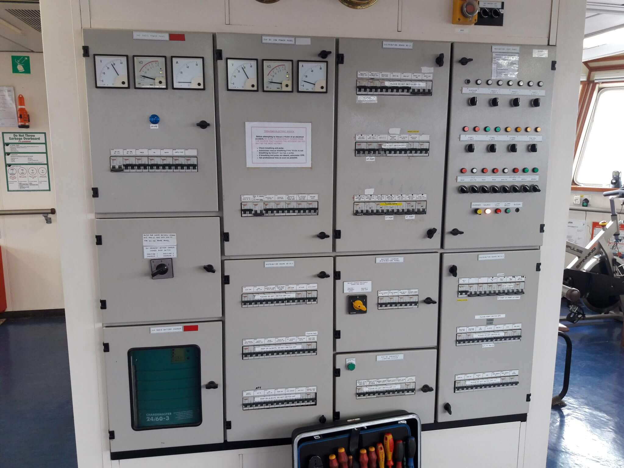 Big issue onboard was its insulation state both for 230V and 24VDC – we did megger test, and tried to repair as much as possible repairs on damaged equipment.